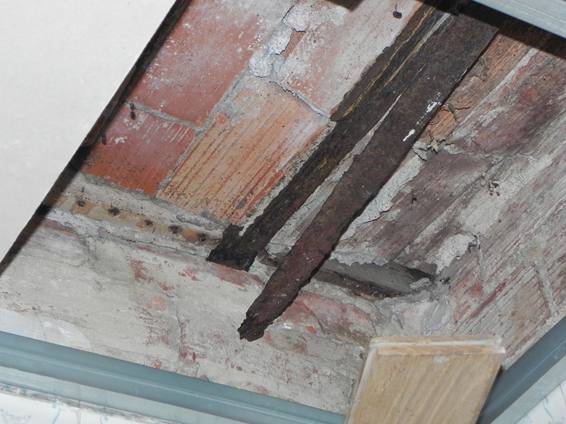 NouBau I SantanderComo suele ser habitual en muchos edificios, los forjados de las zonas húmedas de esta construcción, ejecutados con viguetas metálicas y entrevigado de revoltón con ladrillo cerámico, estaban afectados por una intensa oxidación, hasta el punto de encontrarnos con viguetas con el ala desprendida.